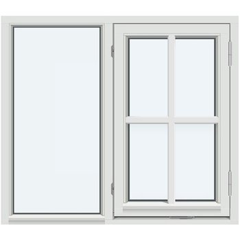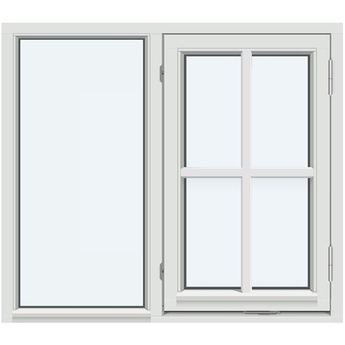 Dette kombinasjonsvinduet med sidehengslet felt og fastkarm i 1:1-1:1 inndeling er en allsidig løsning som kombinerer stort lysinnslipp, praktisk lufting og dekorativt design. Fastkarmdelen fungerer som et lyst og stabilt glassfelt, mens den sidehengslede rammen gir enkel ventilasjon og trygg rømningsvei der det er nødvendig. Vinduet leveres i solid treverk tilpasset norsk klima, med mulighet for utvendig aluminiumskledning og isolerglass med gode energiegenskaper.