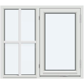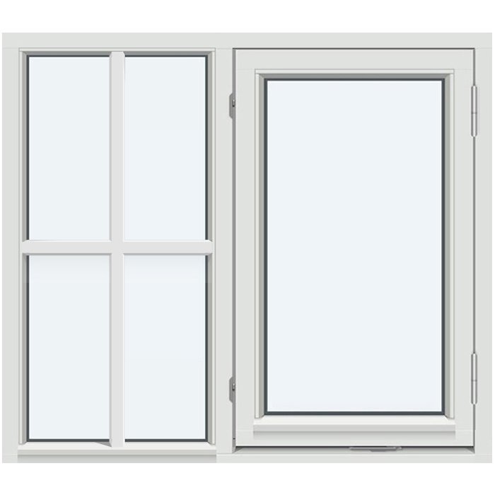 Dette vinduet passer godt i stue, spisestue eller soverom, og er et godt valg når du ønsker å ta igjen sprossedetaljer fra andre vinduer eller ytterdør. Kombinasjonen av fastkarm og sidehengslet vindu i samme karm gir ikke bare et penere fasadeuttrykk, men også en mer energieffektiv konstruksjon enn å montere flere enkeltvinduer ved siden av hverandre.