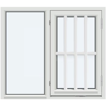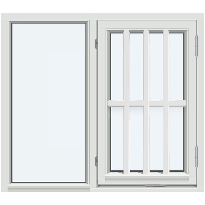 Sidehengslet/Fastkarm 1:1 med 1 vannrett og 3 loddrette sprosser er et kombinasjonsvindu som gir en pen balanse mellom store glassflater og tydelig ruteinndeling. Den sidehengslede rammen gjør det lett å åpne vinduet helt for gjennomlufting, mens fastkarmen sørger for maksimal stabilitet og lysinnslipp. Fire ruter i høyden gir et rolig og moderne uttrykk som passer godt på fasader med rene linjer, samtidig som sprossene skaper dybde og liv i glassflaten.