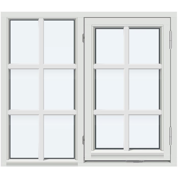 Dette sidehengslede / fastkarm kombinasjonsvinduet i 1:1-1:1 inndeling gir deg en kombinasjon av gode lysforhold, praktisk lufting og et markant klassisk rutemønster. Fastkarmdelen fungerer som et stabilt glassfelt som slipper inn mye dagslys, mens det sidehengslede feltet gir enkel og trygg lufting i hverdagen. Vinduet produseres i robust treverk, tilpasset norske værforhold, med tilvalg som utvendig aluminiumskledning og 2- eller 3-lags isolerglass.
