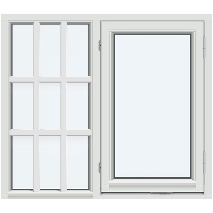 Dette kombinasjonsvinduet med sidehengslet felt og fastkarm i 1:1-1:1 inndeling gir deg en løsning som både er praktisk i bruk og dekorativ på fasaden. Fastkarmdelen fungerer som et stort glassfelt som slipper inn mye dagslys, mens den sidehengslede rammen gir enkel lufting og mulighet for rømningsvei. Vinduet produseres i kvalitetstre med tilvalg som utvendig aluminiumskledning, 2- eller 3-lags isolerglass og moderne beslag.